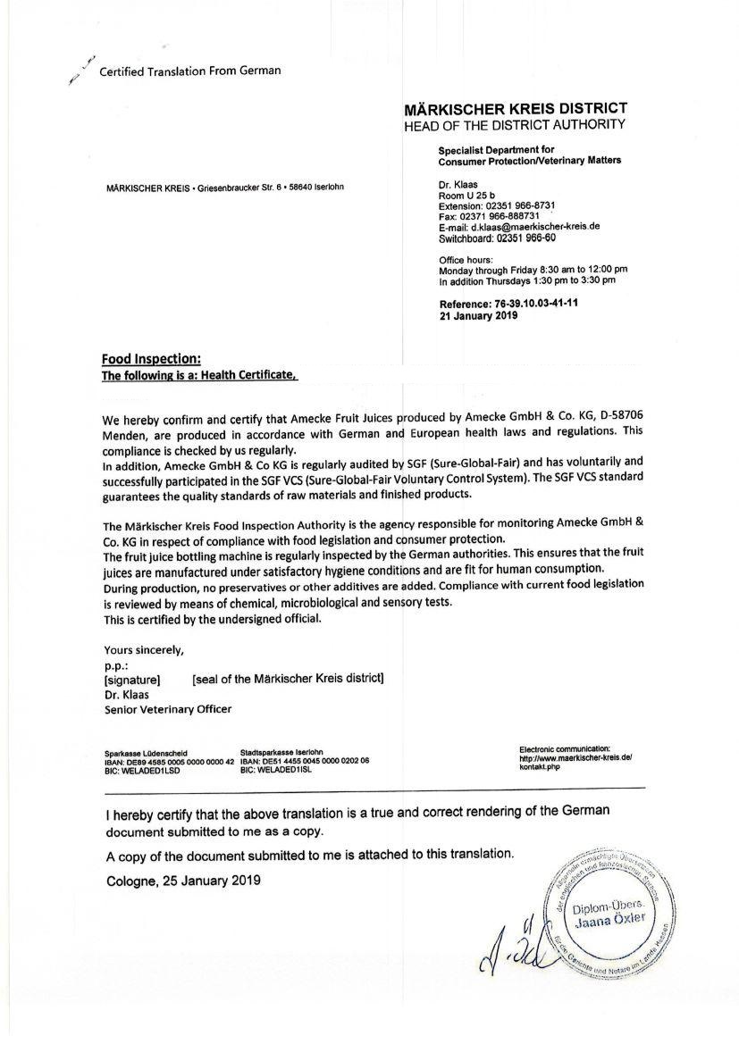 After receiving the imported food, the consignor must send samples for inspection according to the requirements of the quarantine department. This process is necessary. Before that, all goods should not be used at will; after passing the inspection, the entry exit inspection and Quarantine Bureau will issue a health certificate, generally 15-20 working days, which is to prove that the batch of imported food meets the human consumption standard and can be sold on the market.