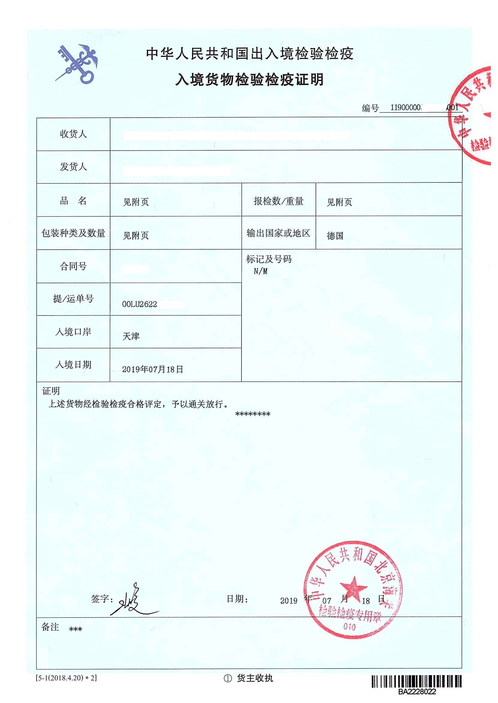5. The consignee and consignor shall record the import in the quarantine department of China.