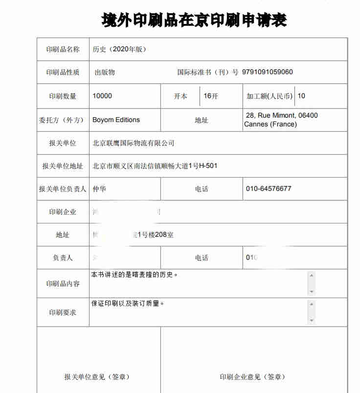 All publications that accept foreign orders for printing in China must apply to the press, publication, radio, film and Television Bureau for filing, and I can apply online, "overseas printing application form" needs to be sealed and uploaded by the customs declaration company and the consignor.