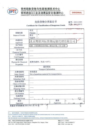 Finally, in addition to the above process, the export of dangerous goods by air also needs to make a product identification report at the organization designated by the airline, which can be issued by DGM and Shanghai Chemical hospital in China.