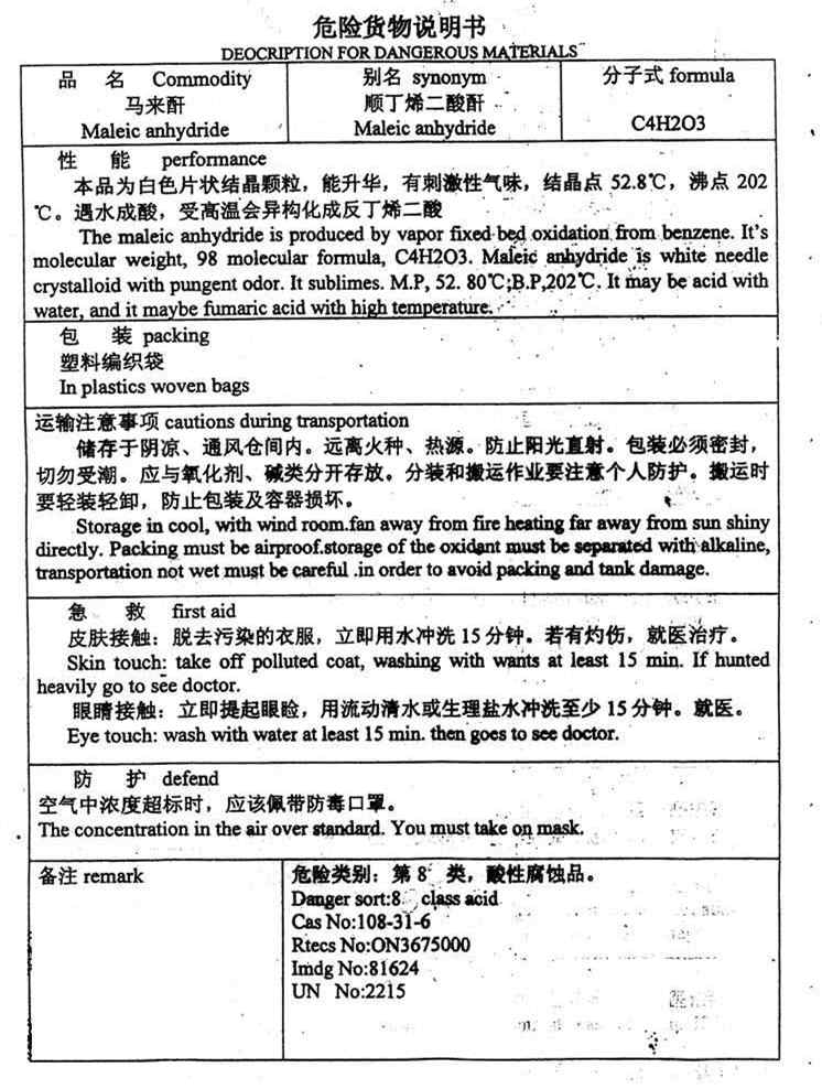 2. 危險貨物說明書。