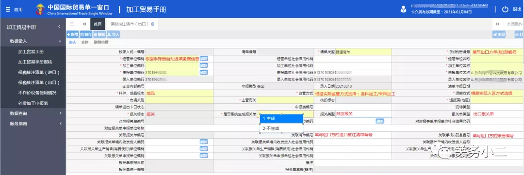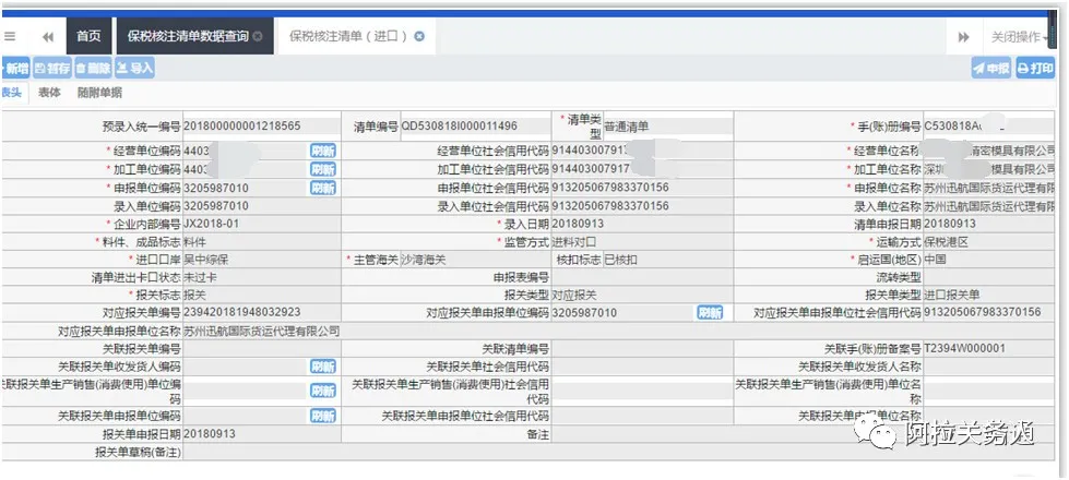 4、保稅核注清單的邏輯檢查、填制要求基本與現(xiàn)行報(bào)關(guān)單、進(jìn)出境備案清單要求相同。