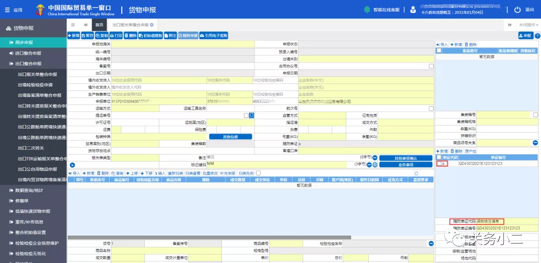 2、核注清單表頭,報(bào)關(guān)標(biāo)志字段選擇“非報(bào)關(guān)”時(shí),不生成暫存的報(bào)關(guān)單草稿:企業(yè)需在單一窗口--貨物申報(bào)--出口報(bào)關(guān)單申報(bào)頁面,手動錄入出口報(bào)關(guān)單數(shù)據(jù),隨附單證欄,手動關(guān)聯(lián):進(jìn)口核注清單編號,進(jìn)行報(bào)關(guān)單申報(bào)。