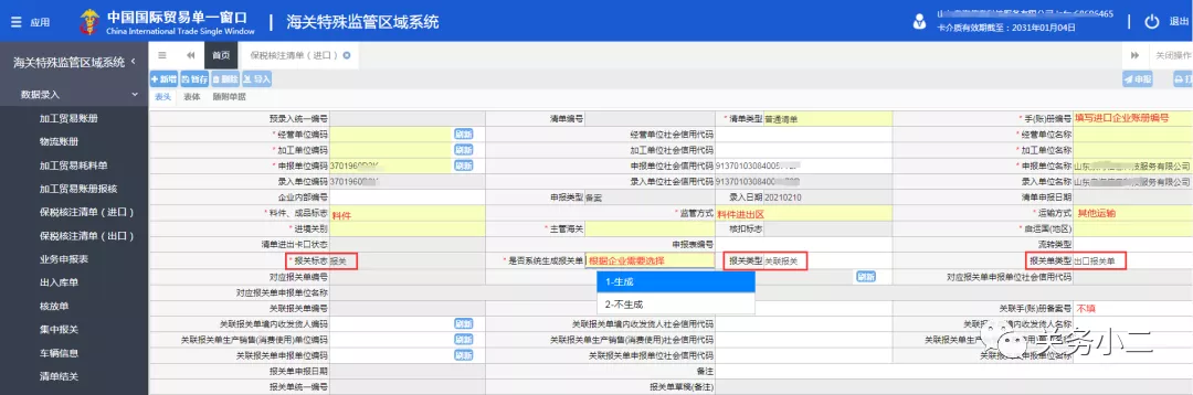 3.區(qū)外金二加工貿(mào)易轉(zhuǎn)出至倉儲金二的,轉(zhuǎn)入的先錄,轉(zhuǎn)出的后錄。轉(zhuǎn)入的要錄關(guān)聯(lián)賬冊號是轉(zhuǎn)出的。轉(zhuǎn)出的后錄,不光要錄轉(zhuǎn)入的關(guān)聯(lián)賬冊號,還要錄轉(zhuǎn)入的清單號。
