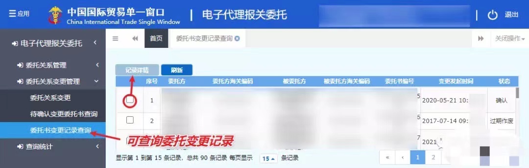 (7)在【委托書變更記錄查詢】中可查詢委托變更記錄。